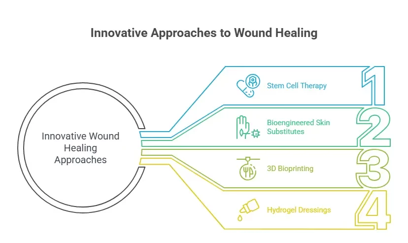 Tissue bioengineering combines advanced biomedical techniques including stem cell therapies, bioengineered skin grafts, and 3D bioprinting to promote faster and more effective wound healing. These strategies focus on regenerating skin tissue, improving blood vessel formation, and restoring the skin’s natural barrier function to prevent infections and promote durable healing.